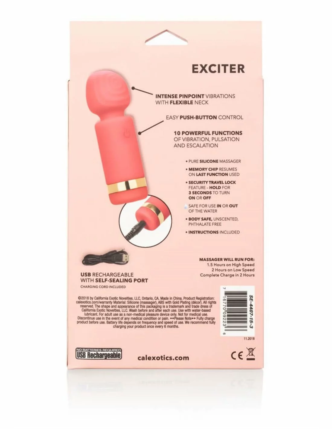 De stimulator heeft 10 verschillende vibratiefuncties en is perfect voor beginners en ervaren gebruikers. Laad de Exciter op met de meegeleverde USB-kabel.