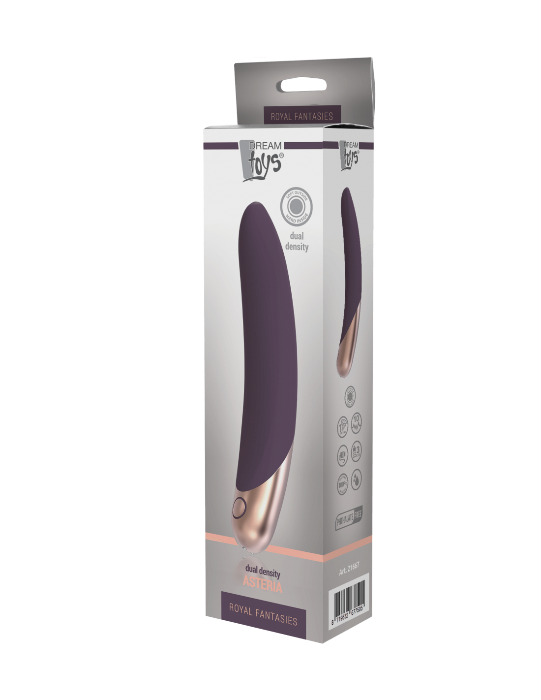 De Asteria is een elegante vibrator gemaakt van zachte siliconen en ABS, met een glanzende metallic look basis.