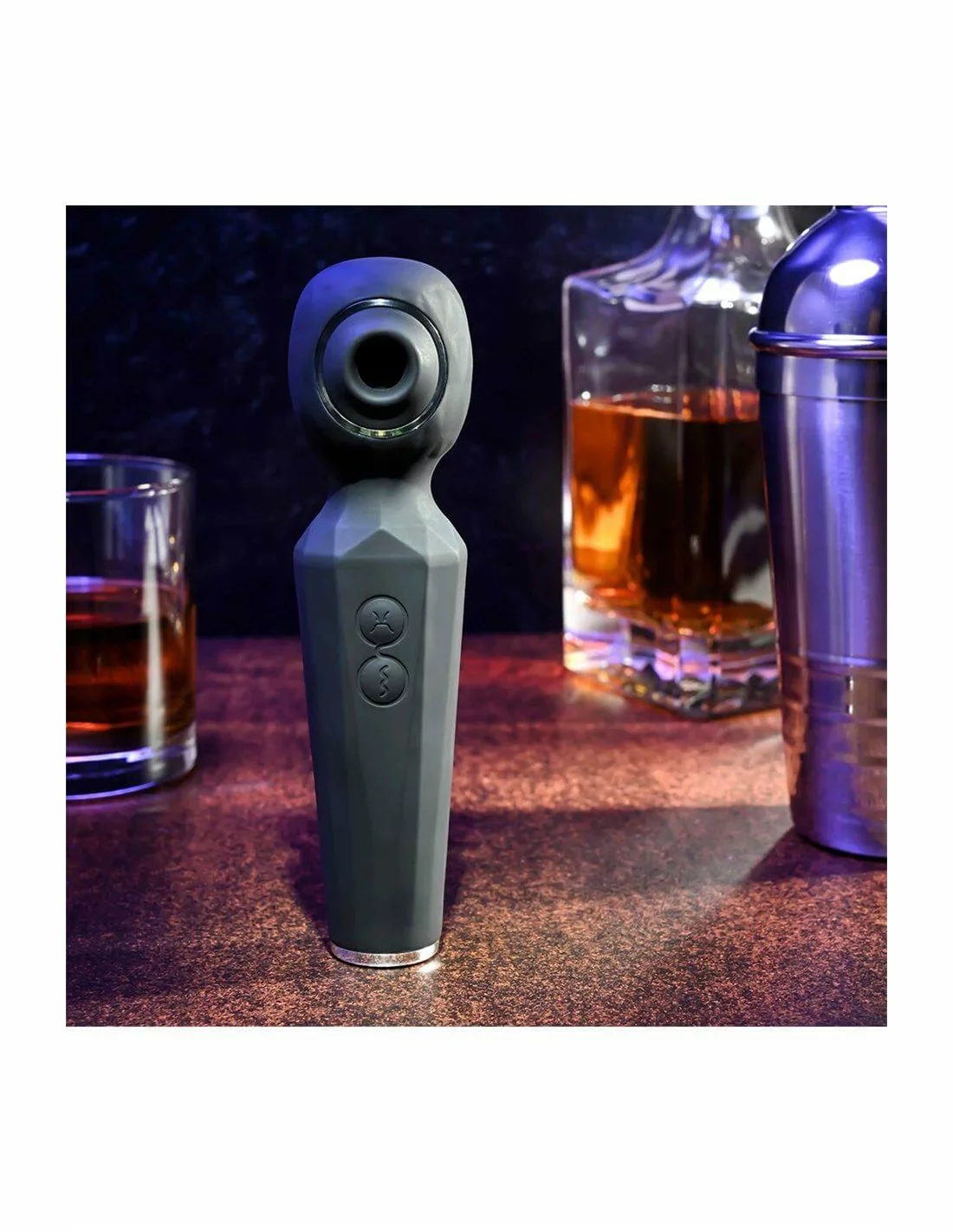 Ervaar een unieke combinatie van genot met deze staaf met dubbele functie die krachtig trilt en zachtjes zuigt.